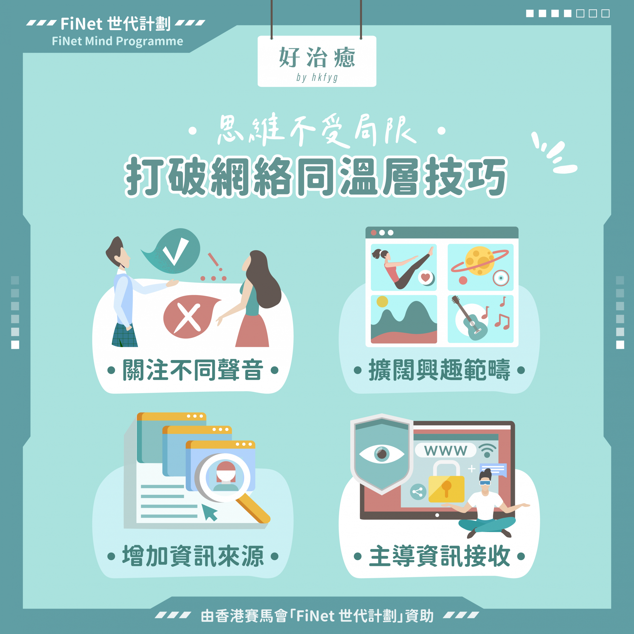 #網絡同溫層 #EchoChamber #多元思維 #擴闊視野 #數碼健康 #DigitalWellness # FiNet #FiNetMindProgramme #香港賽馬會 #HongKongJockeyClub #HKJC #好治癒 #WholeWellness #HKFYG #青協
