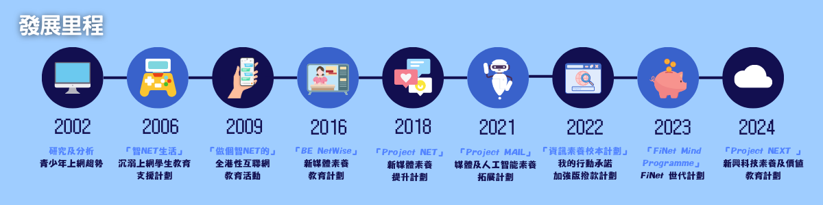 「 FiNet 世代計劃FiNet Mind Programme 」:於2023-2024年為22間中學提供服務,培養青少年的「未來技能」發展,鞏固他們的網絡素養及建構正確的理財觀念提供 2313位學生,46教師。另外亦發佈15篇有關網絡健康及理財健康的教育文章,瀏覽人數為約55,000。