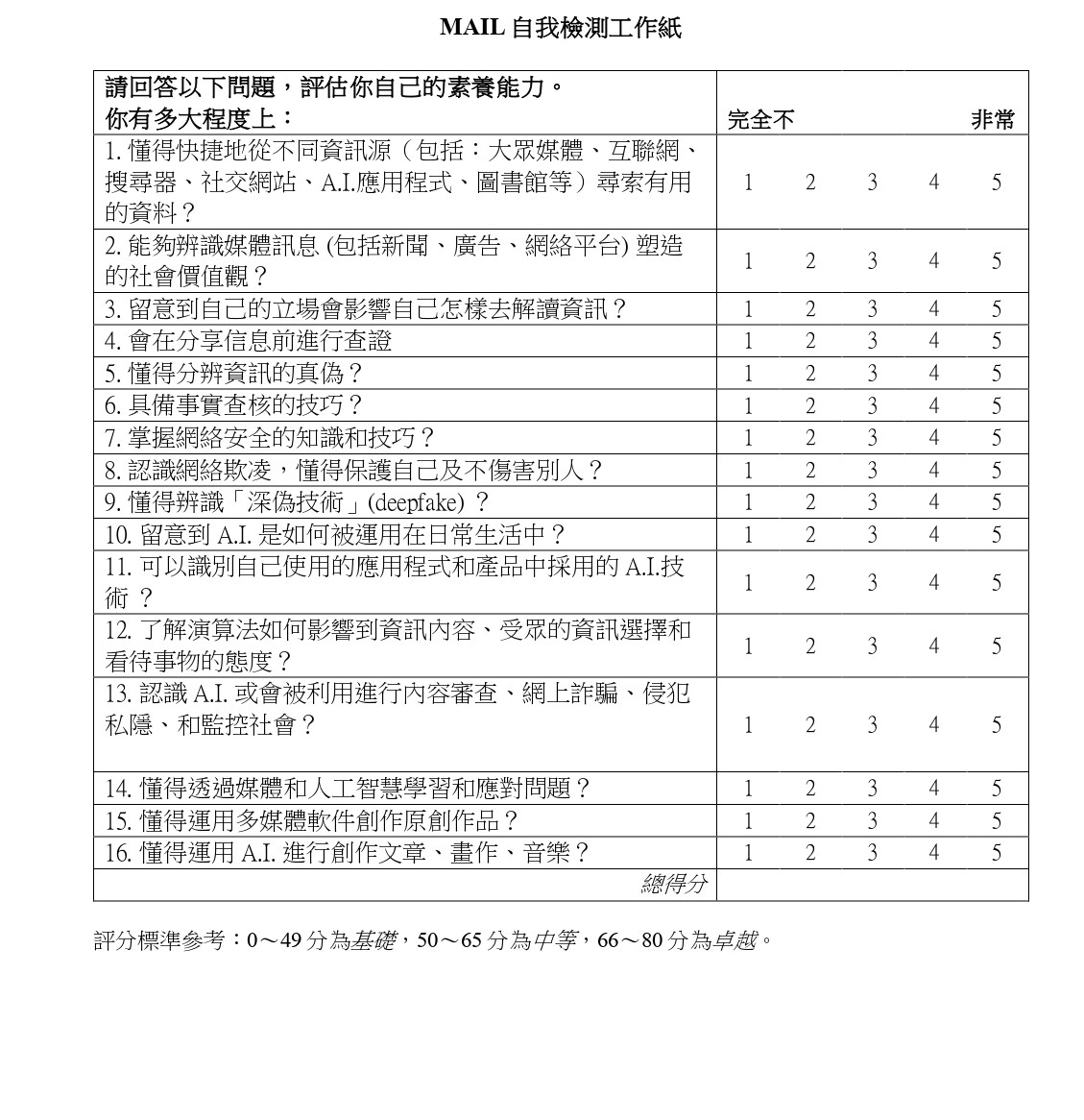 從而針對性地加強個別需要,以下為MAIL自我檢測的工作紙: