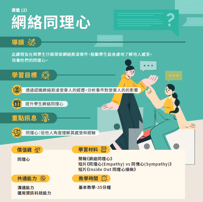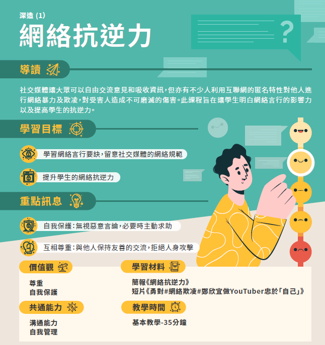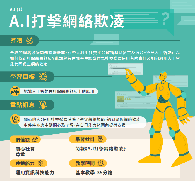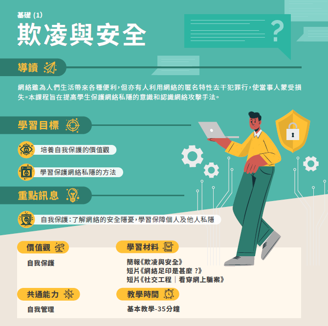 Project MAIL 教材套 – 欺凌與安全 承蒙優質教育基金贊助,香港青年協會於2021-2023年推行為期三年的Project MAIL,為全港35間中學提供媒體及人工智能素養課程。 為支援本港學校繼續培育青少年的數碼能力及未來技能,並配合日新月異的科技發展,我們編撰了最新中學教材資源套,為教師提供緊貼時代步伐、內容全面的教學素材。 資訊與真偽 欺凌與安全 創作與權益 網絡溝通及公民參與